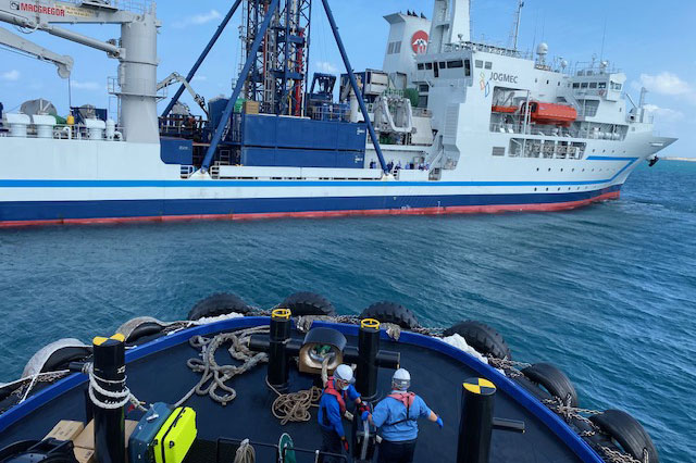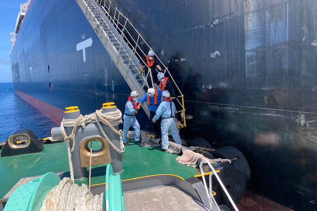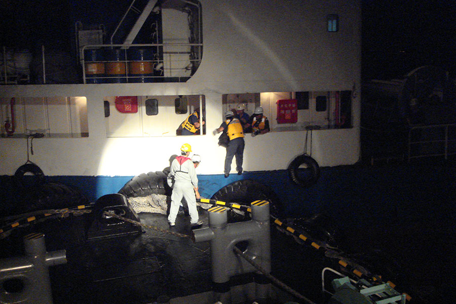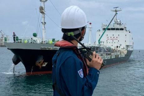 船舶代理店事業では、船舶や船会社に代わって、入出港や危険物荷役等の関係官庁への各種申請、水先人、タグボート、綱取り作業の手配を行います。