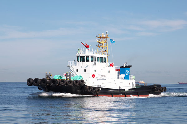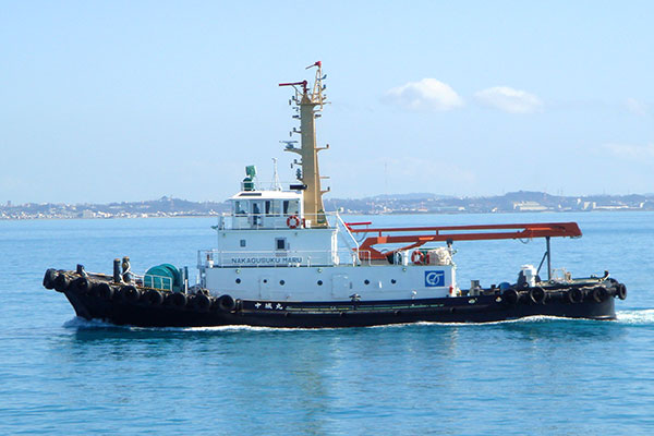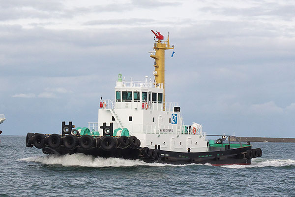 “Multi-purpose workboat” that is used for a variety of purposes, such as large-scale vessel mooring/unmooring, passenger transfer, buoy installation, and escorting ships through narrow waterways within Nakagusuku port.