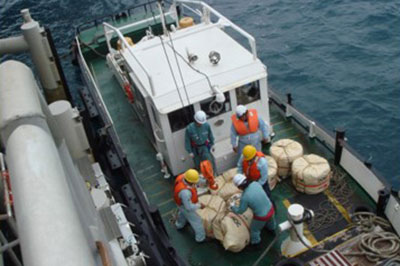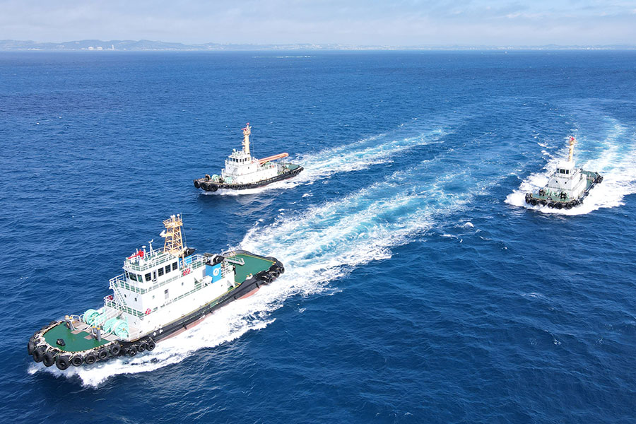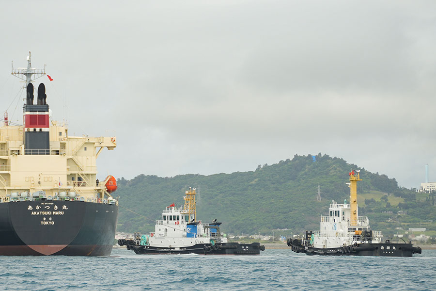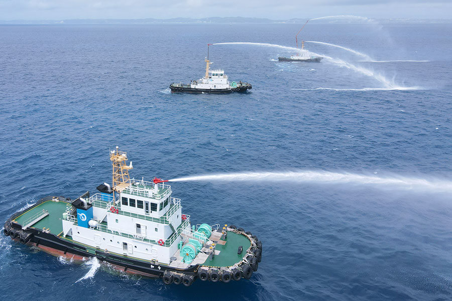 Our tugboats are also equipped with a variety of firefighting equipment and oil spill treatment gear, and are used for maritime disaster prevention activities (MDPA) in the event of an accident.