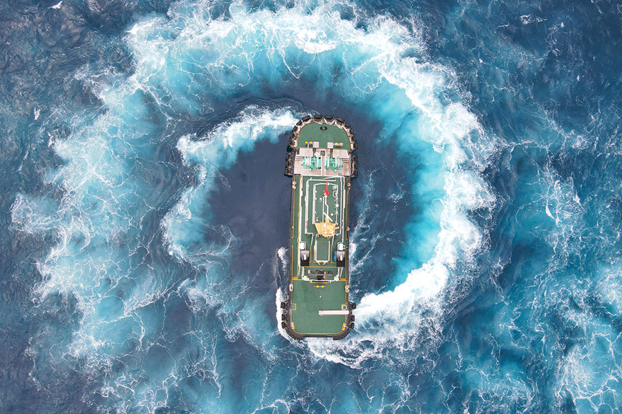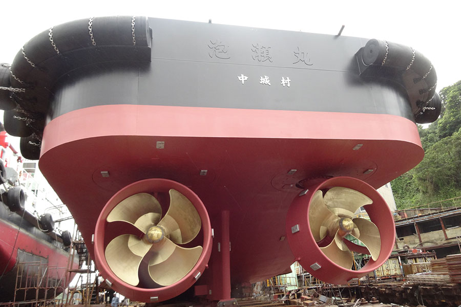 Tugboats, despite their small size, are equipped with powerful engines, and are characterized by their maneuverability with their special propellers. They utilize their performance to safely support large-scale vessels docking/undocking.