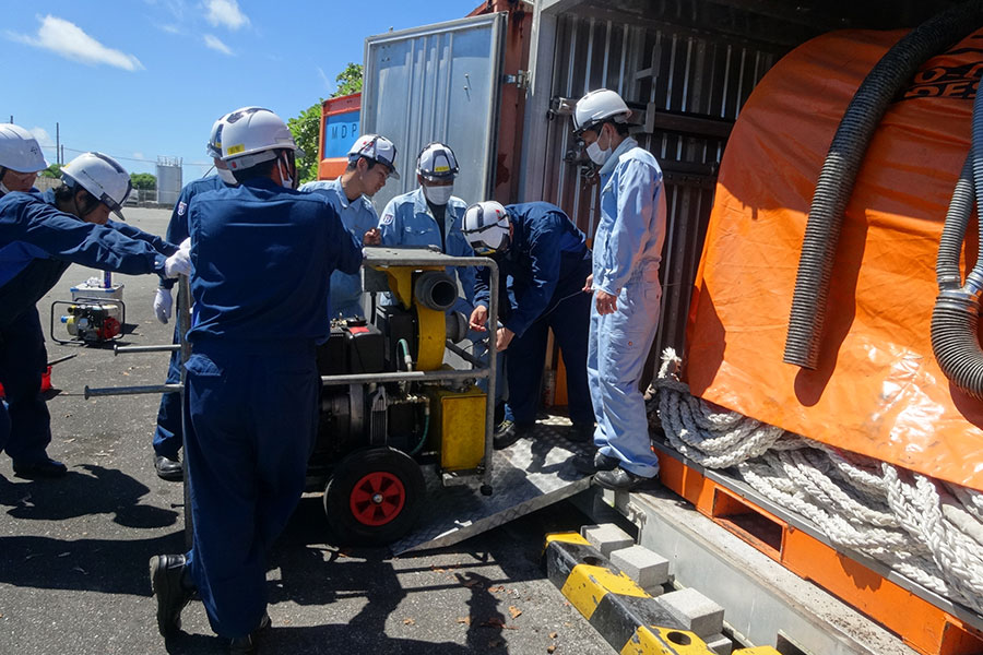 一般財団法人海上災害防止センターから、資機材の管理点検業務を請負っています。資機材の管理・点検、作動テストのほか、定期的に資機材搬出訓練を行って有事の際には迅速に対応できるよう努めております。
